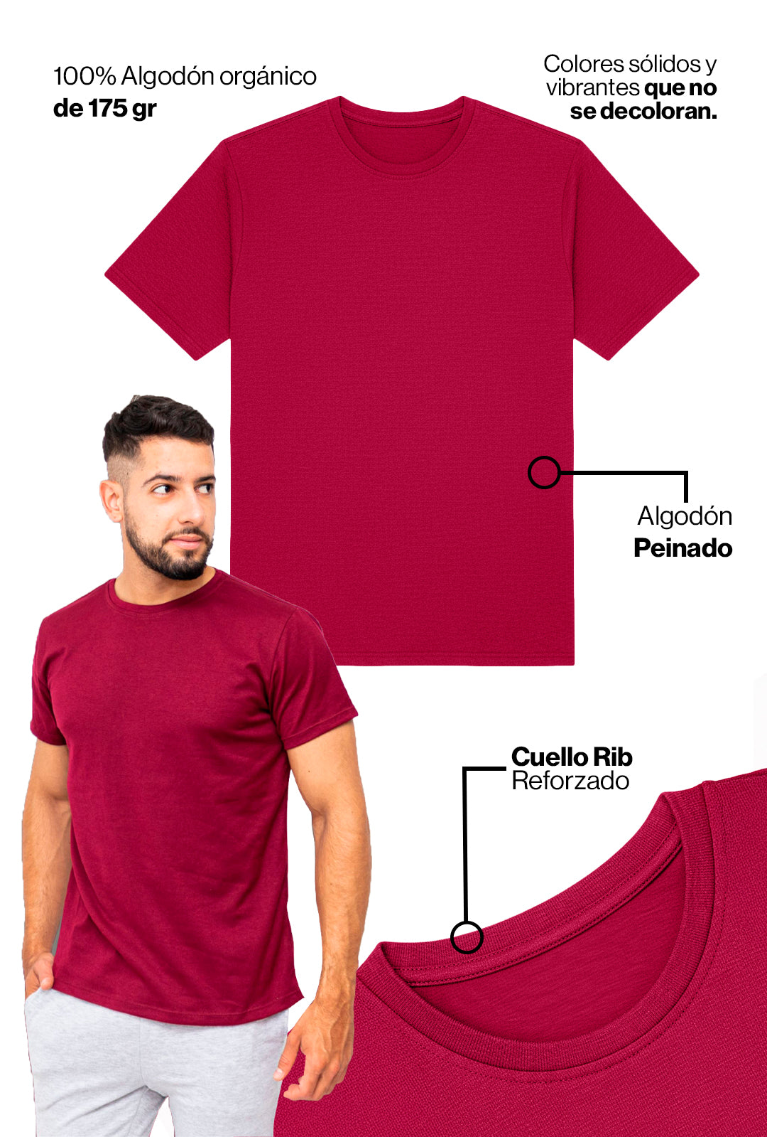 💪🏽 Cuello Rib Reforzado |🎨 No decoloran.